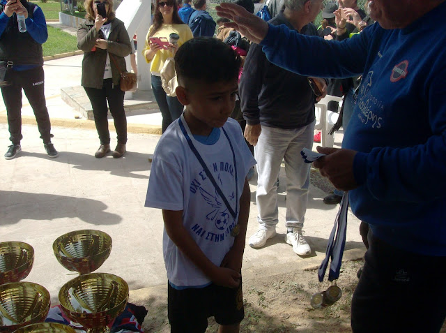 Απονεμήθηκαν μετάλλια και ένα κύπελλο σε κάθε ομάδα, φωτογραφήθηκαν όλοι μαζί και σειρά πήραν τμήματα άλλων ηλικιών. Την Μ.Τετάρτη θα παίξουν τα ανδρικά τμήματα της Αμφιάλης και της Αθλητικής Ελπίδας προσφύγων στο γήπεδο των Σιταποθηκών.