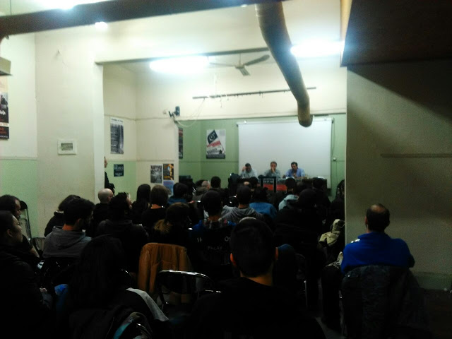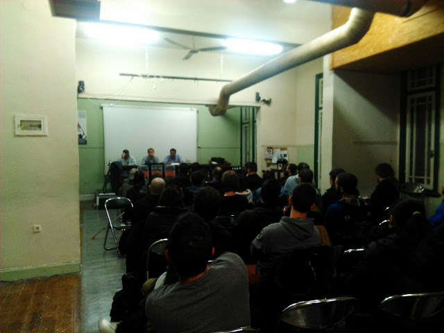 Με μεγάλη συμμετοχή διεξήχθη η εκδήλωση “Αθλητισμός και κοινωνικά κινήματα”. Στην εκδήλωση μίλησε πρώτος ο Νάσος Μπράτσος, συγγραφέας του βιβλίου. Κάνοντας μια ιστορική ανασκόπηση, αναφέρθηκε σε πολλές ομάδες και περιστατικά της ναζιστικής κατοχής και του εμφυλίου. Στη συνέχεια στα μετεμφυλιακά χρόνια και τη δικτατορία για να καταλήξει στο σήμερα. Αναφέρθηκε εκτενώς στα αυτο-οργανωμένα εγχειρήματα που έχουν δημιουργηθεί σε διάφορες πόλεις τα τελευταία χρόνια. Στη συνέχεια το λόγο πήραν οι εκπρόσωποι από τις ομάδες Micropolis Kickboxing και Προοδευτική “Έκρηξη” Τούμπας. Μετά το τέλος των παρουσιάσεων των ομάδων και της πορείας τους μέχρι σήμερα, η κουβέντα συνεχίστηκε με παρεμβάσεις από τους παρευρισκόμενους.