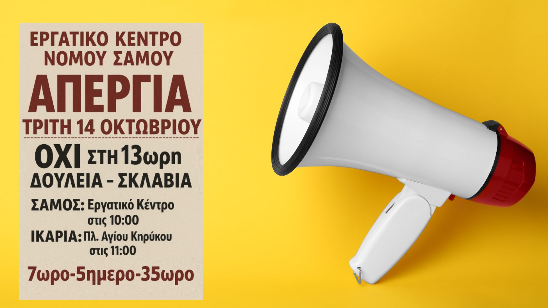 Απεργία και συγκεντρώσεις σε Σάμο και Ικαρία στις 14 Οκτώβρη για το 13ωρο