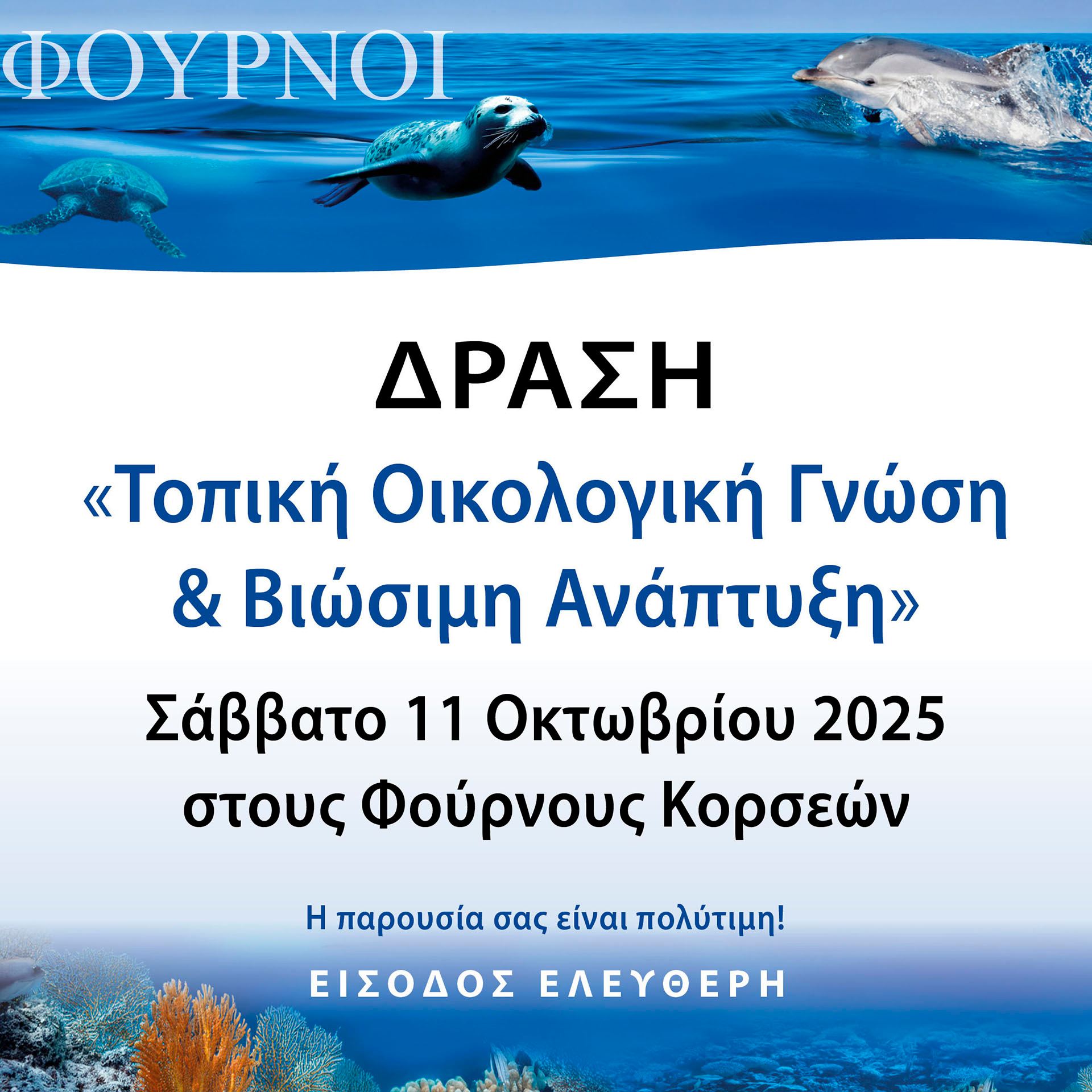 Η Blue Star Ferries με το πρόγραμμα «Πλέουμε Μαζί» θα βρεθεί στους Φούρνους και το Σάββατο 11 Οκτωβρίου θα πραγματοποιήσει ημερίδα με θέμα: «Τοπική Οικολογική Γνώση και Βιώσιμη Ανάπτυξη» , σε συνεργασία με τον Δήμο Φούρνων Κορσεών, την εθελοντική υποστήριξη του Ινστιτούτου Θαλάσσιας Προστασίας «ΑΡΧΙΠΕΛΑΓΟΣ», του Οργανισμού «Procopiou Origins» & του Ινστιτούτου Οικολογικής Γεωργίας «ΔΗΩ».