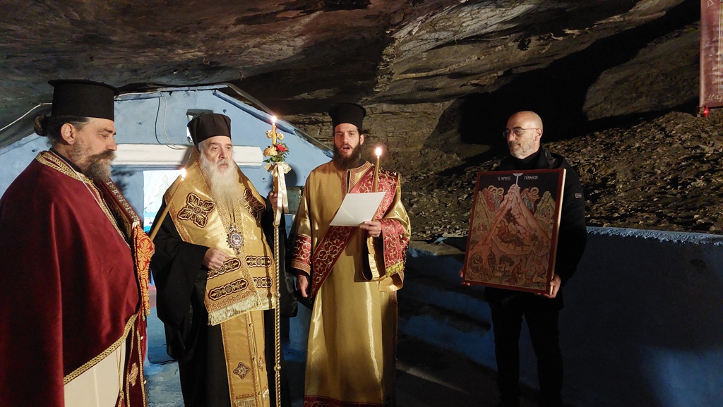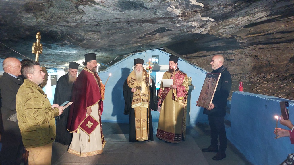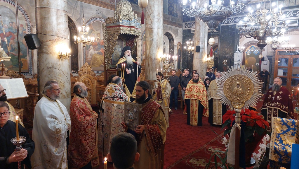 Τήν Δεύτερη ἡμέρα τῆς Ἐορτῆς ὁ Ποιμενάρχης μας χοροστάτησε στόν Ὂρθρο καί στή Θεία Λειτουργία στό Καθολικό τῆς Ἱερᾶς Μονῆς Παναγίας Σπηλιανῆς στό Πυθαγόρειο. Στό τέλος τῆς Θείας Λειτουργίας ἐν πομπή μεταφέρθηκε ἡ ἱερά εἰκόνα τῆς Γεννήσεως τοῦ Χριστοῦ στό Παρεκκλήσιο τῆς σπηλιάς. Ἐψάλλησαν τά Μεγαλυνάρια τῶν Χριστουγέννων, τό Εὑαγγέλιο τῆς Α΄ ὧρας καί έγινε σχετική Δέησις (Κατά τό παραδοσιακό Τυπικό τοῦ Νησιοῦ μας). Ὁ Σεβασμιώτατος ὁμίλησε ἐπίκαιρα καί εὑχήθηκε τά δέοντα.