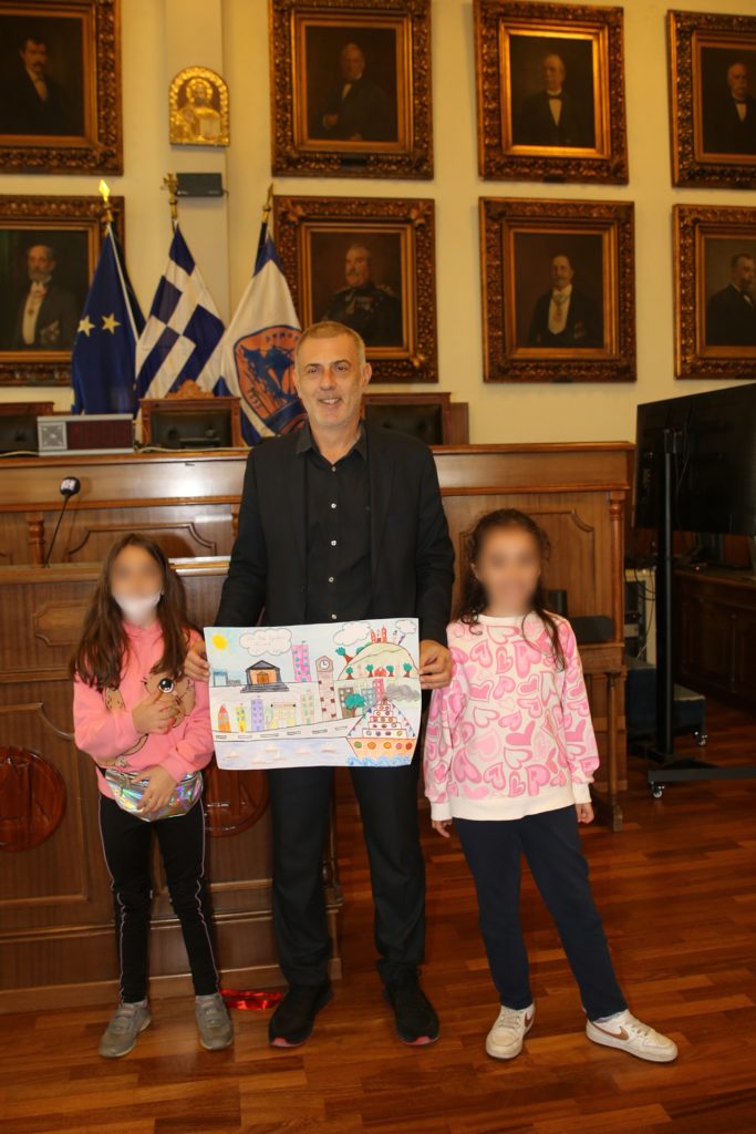 Στο τέλος της επίσκεψης, ο κ. Μώραλης προσέφερε στις δασκάλες βιβλία για την ιστορία του Δημοτικού Θεάτρου και στα παιδιά Χριστουγεννιάτικα δώρα. Από τη μεριά τους, οι μαθητές προσέφεραν στον Δήμαρχο μια μεγάλη ζωγραφιά.