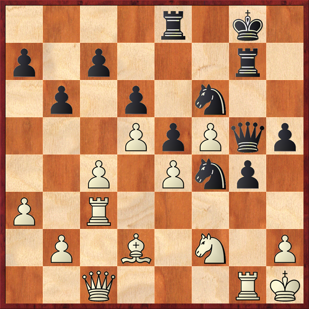 1.δ4 ε6 2.γ4 ζ5 3.Ιγ3 Ιζ6 4.ε3 β6 5.Αε2 Αβ7 6.Ιζ3 Αβ4 7.Αδ2 0–0 8.0–0 δ6 9.Ιη5 Βε7 10.ζ3 θ6 11.Ιθ3 η5 12.Ιζ2 Ιβδ7 13.α3 Αxγ3 14.Αxγ3 Παε8 15.Πε1 ε5 16.δ5 Βη7 17.η4 ζxη4 18.ζxη4 Πζ7 19.Αδ3 Αγ8 20.Αζ5 Ιζ8 21.ε4 Ιη6 22.Ρθ1 Ιζ4 23.Αδ2 Αxζ5 24.ηxζ5 η4 25.Πη1 θ5 26.Πγ1 Βη5 27.Πγ3 Πη7 28.Βγ1 [το κομπιούτερ προτείνει: 28.Πγη8 Ρθ8 29.Βζ1]