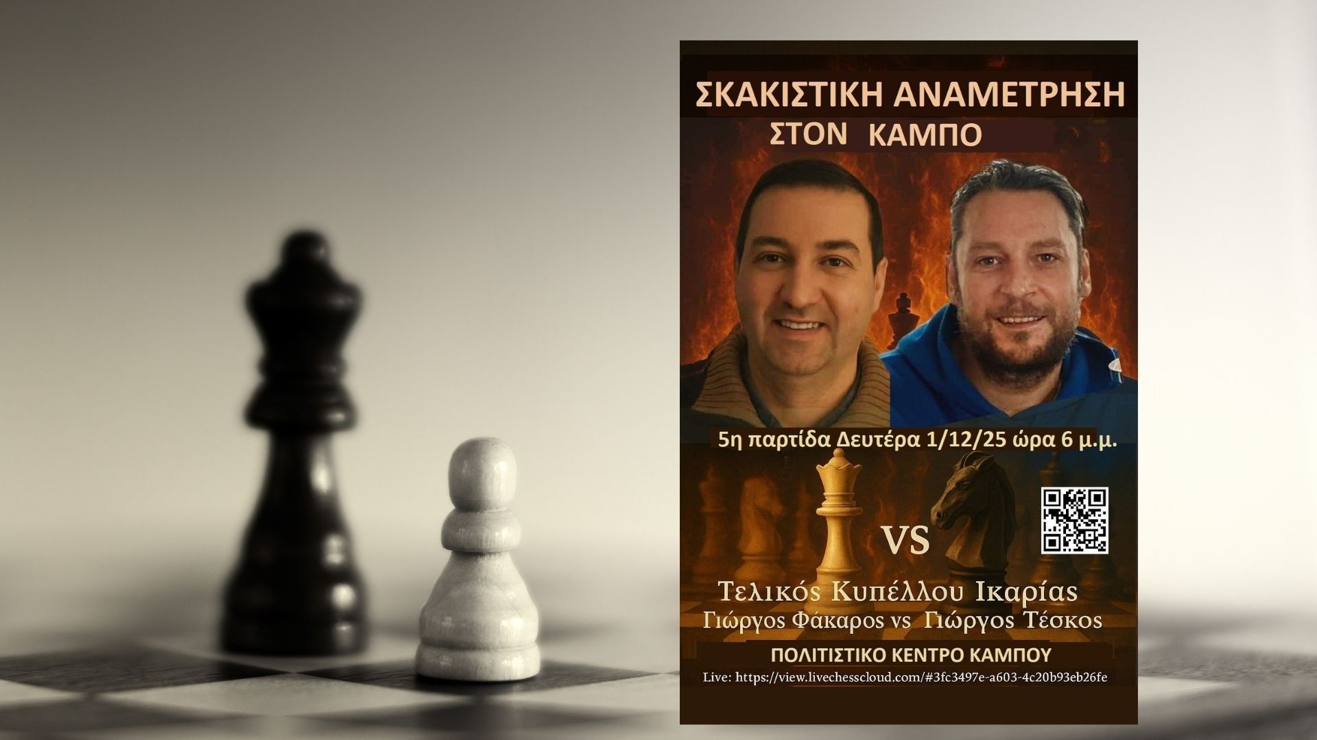Η 5η σκακιστική συνάντηση του Κυπέλλου Ικαρίας τη Δευτέρα 1 Δεκεμβρίου στον Κάμπο