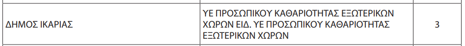 Στην Ικαρία κατανέμονται 3 θέσεις για προσωπικό καθαριότητας εξωτερικών χώρων