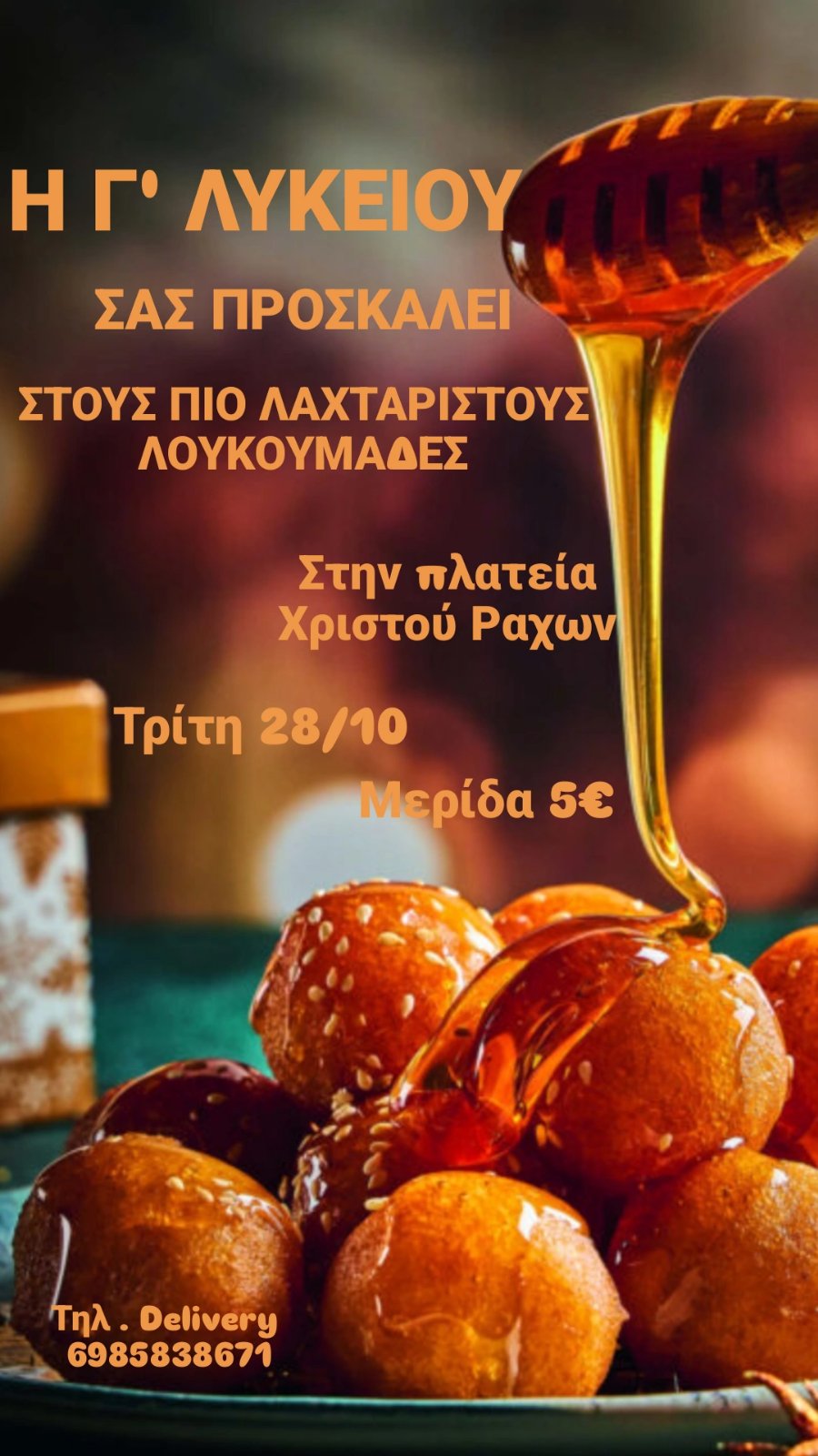 Λαχταριστοί λουκουμάδες από την Γ΄ Λυκείου Ραχών , αύριο 28η Οκτώβρη μετά την παρέλαση στη Πλατεία του Χριστού!