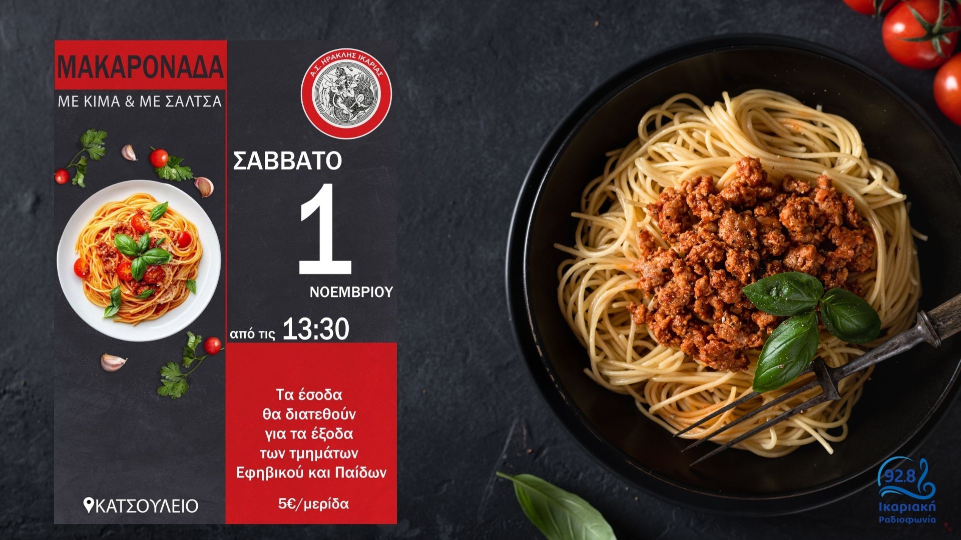 Ο ΑΣ Ηρακλής σας προσκαλεί σε μακαρονάδα το Σάββατο 1 Νοεμβρίου στο Κατσούλειο και ώρα από τις 13.30μμ για οικονομική ενίσχυση των τμημάτων.