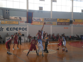 Στο ημίχρονο έκανε ένα πέρασμα και ο «ξανθός» του ελληνικού μπάσκετ Γιάννης Ιωαννίδης μαζί με παίκτες της Α.Ε. Σαντορίνης (εκεί αγωνίζεται και ο αειθαλής Βαγγέλης Βουρτζούμης).