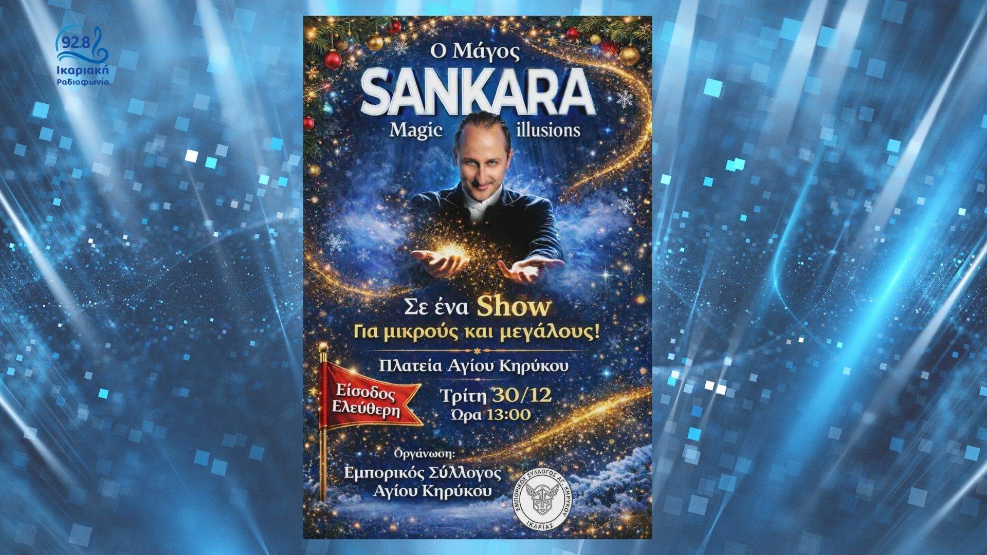 Ο Εμπορικός Σύλλογος Αγίου Κηρύκου υποδέχεται τον Μάγο Sankara και σας προσκαλεί στις 30 Δεκεμβρίου και ώρα 13.00 στη πλατεία Αγίου Κηρύκου σε μια μοναδική εμπειρία με οφθαλμαπάτες και μαγικά για μικρούς και μεγάλους.