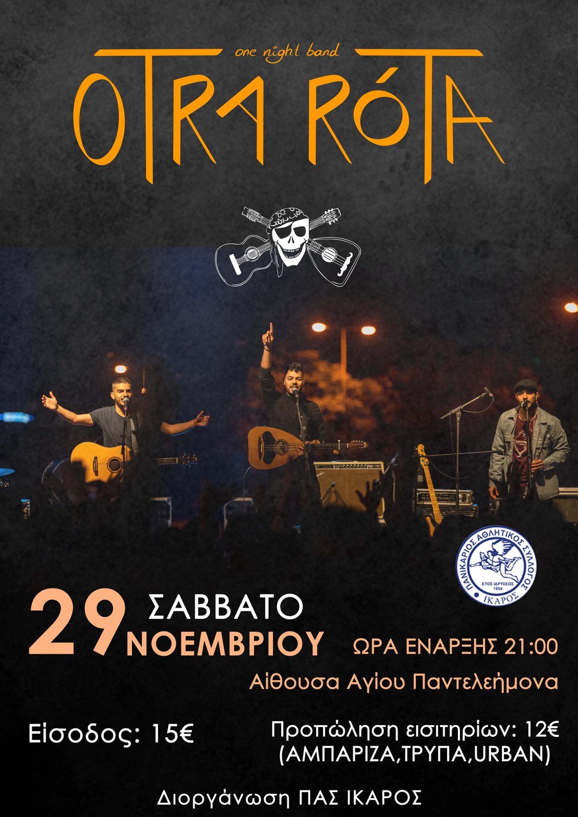 Οι “Otra Rota The One night Band“ , καλεσμένοι του ΠΑΣ Ίκαρος, έρχονται να ξεσηκώσουν την Ικαρία με τον εκρηκτικό ύφος της μουσικής τους που συνδυάζει παραδοσιακά και σύγχρονα στοιχεία.