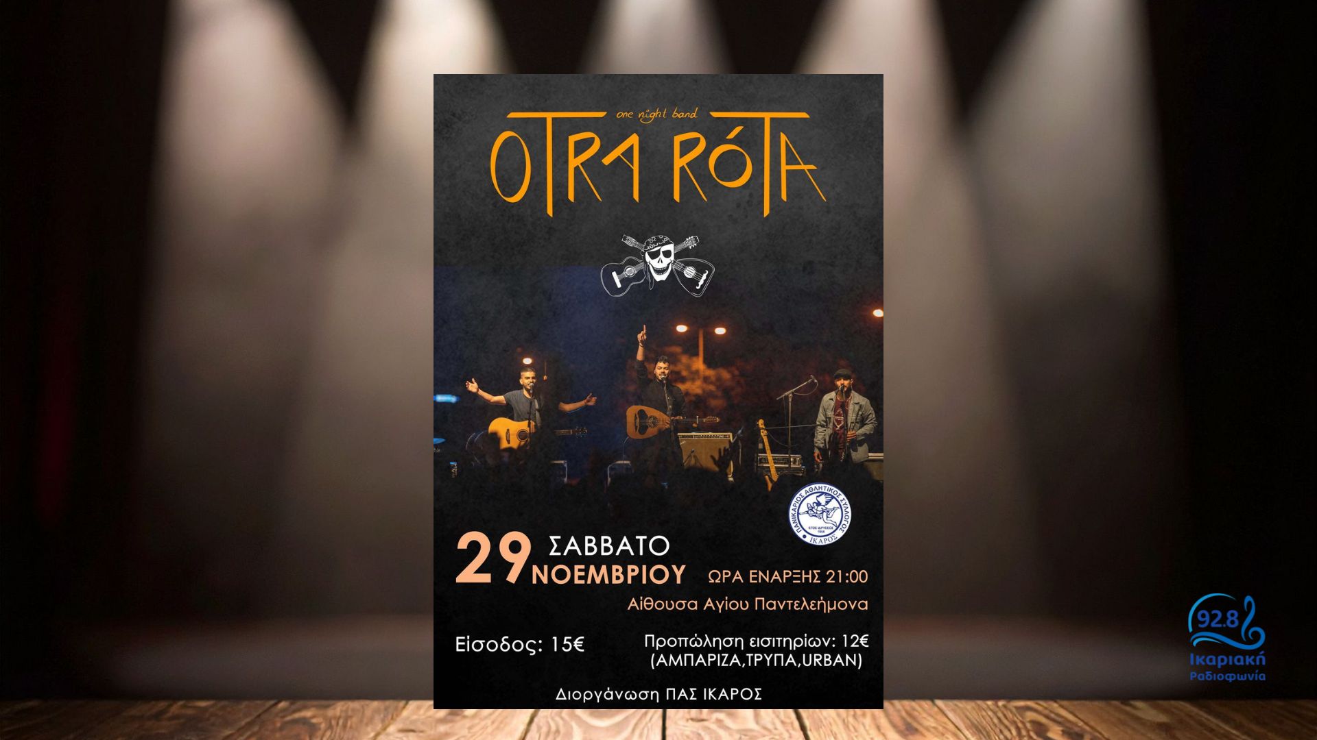 Οι “Otra Rota The One night Band“ , καλεσμένοι του ΠΑΣ Ίκαρος, έρχονται να ξεσηκώσουν την Ικαρία με τον εκρηκτικό ύφος της μουσικής τους που συνδυάζει παραδοσιακά και σύγχρονα στοιχεία.
