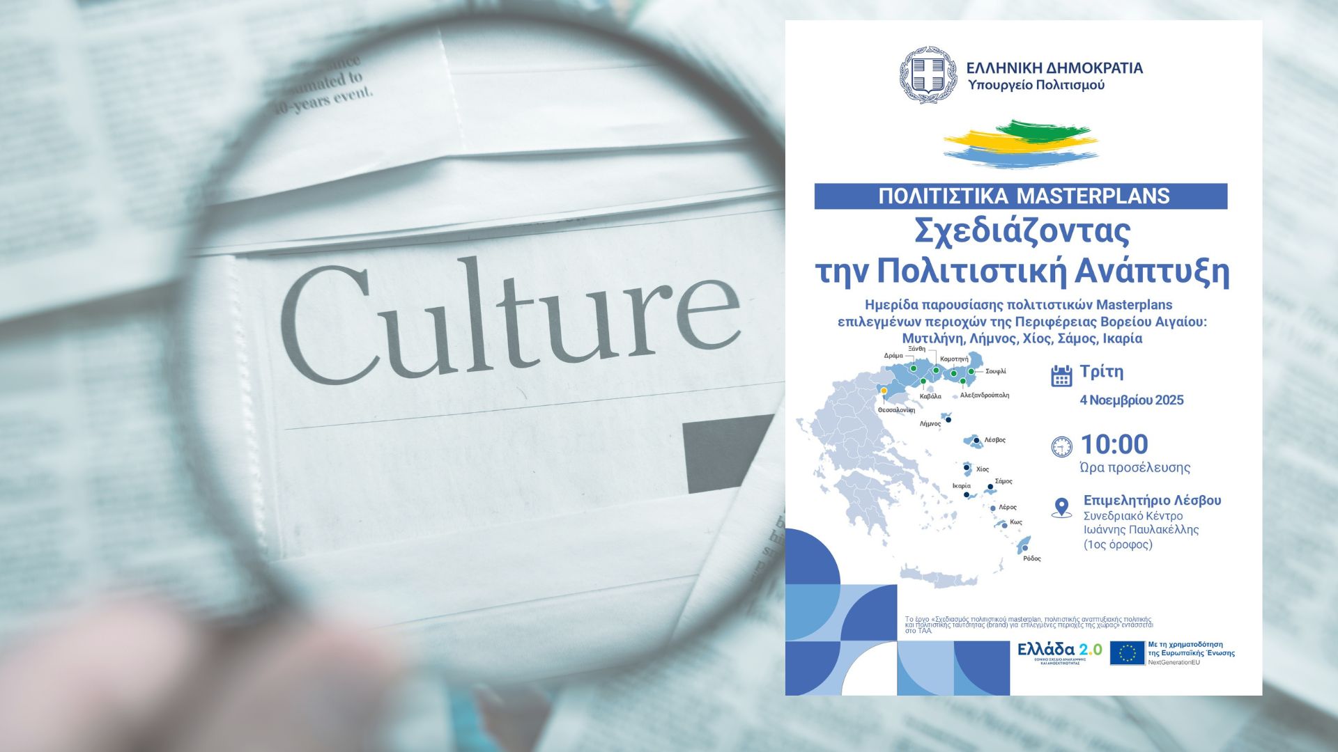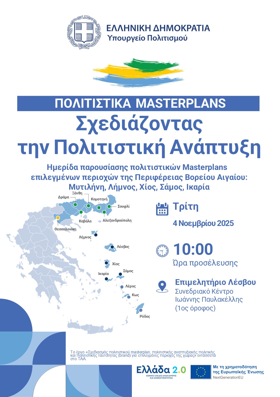 «Πολιτιστικά Masterplans»: Ημερίδα παρουσίασης στη Λέσβο 4 Νοεμβρίου