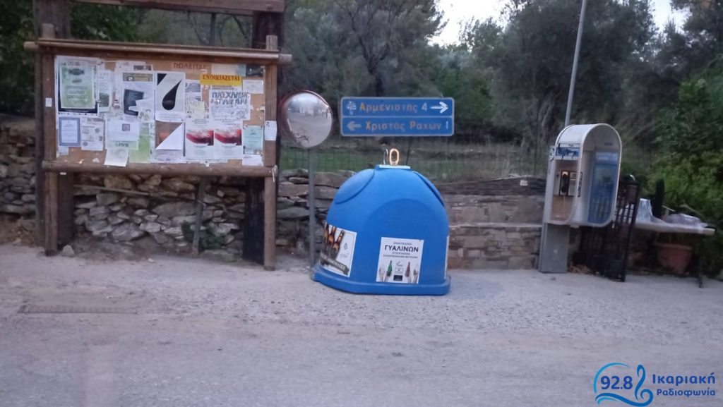 Μετά τη γενναία δωρεά των 10 συνολικά κωδώνων ανακύκλωσης γυάλινων μπουκαλιών από την Ικαριώτισσα (Ικαριακή Ζυθοποιία) και την τοποθέτηση του πρώτου από το βράδυ της Τετάρτης 21 Σεπτεμβρίου από συνεργείο του Δήμου Ικαρίας στο λιμάνι του Ευδήλου, έρχεται και η συνέχεια με τη τοποθέτηση τους σε Άγιο Κήρυκο, Καραβόσταμο, Κάμπο, Γιαλισκάρι, Αρμενιστή, Άγιο Δημήτριο, Χριστό Ραχών, Θέρμα και Φάρο.