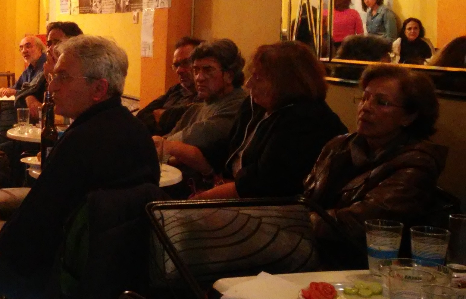 Αρχικά έγινε δειγματοληπτική προβολή ορισμένων συνεντεύξεων από αυτές που περιλαμβάνονται στην ύλη του ντοκιμαντέρ (ακούστηκαν οι συνεντεύξεις των: Αντιγόνης Ρωμυλίου, Ευαγγελίας Καρούτσου, Πάτρας Σιμάκη – Σπέη, Κούλας Καβουριάρη, Νίκου Καρίμαλη, Χρήστου Σταυρινάδη).