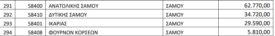 Στους δήμους Ικαρίας, Σάμου και Φούρνων, κατανέμονται τα εξής ποσά: